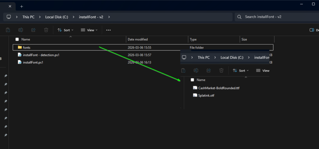 Below is the detection script. Change the variable $fontFileName to the exact name of one of the fonts in your fonts-folder and save it as a .ps1-file: