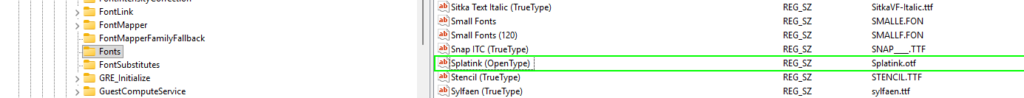 Below are screenshots from my test device. As you can see we have both fonts referenced in RegEdit: