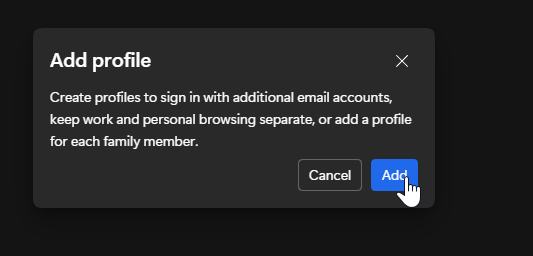 Open Microsoft Edge and go to edge://settings/profiles and hit Add Profile