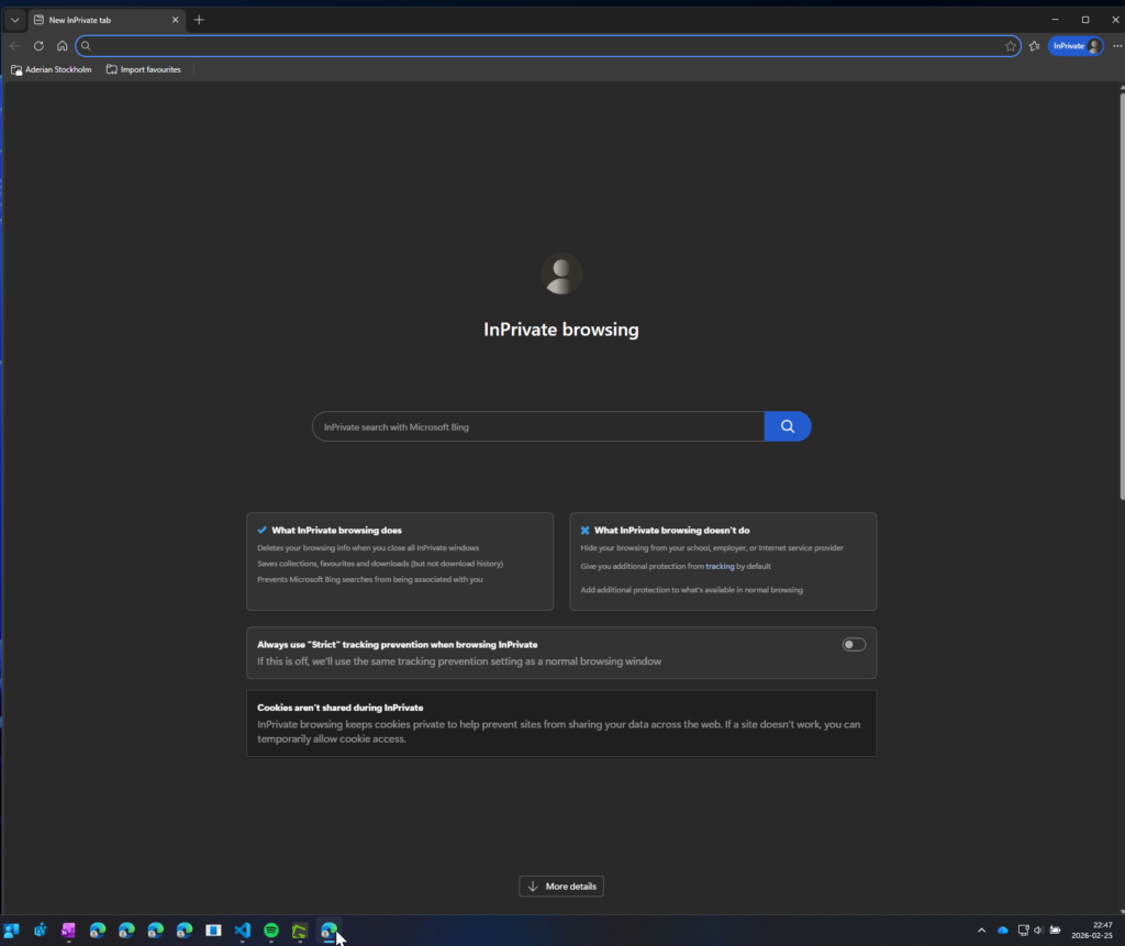 Close that Edge window and open it again and you’ll notice it opens in InPrivate mode