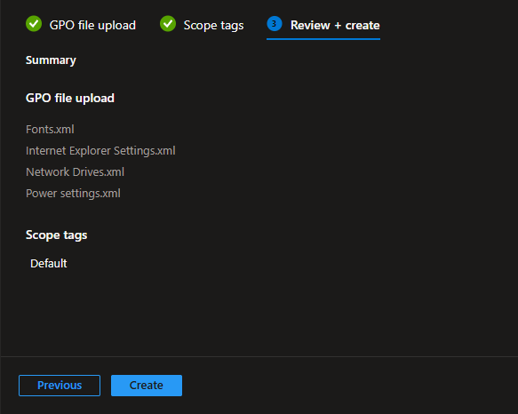 On the final page you get an overview of your imported GPO’s. Hit Create to start creating your report
