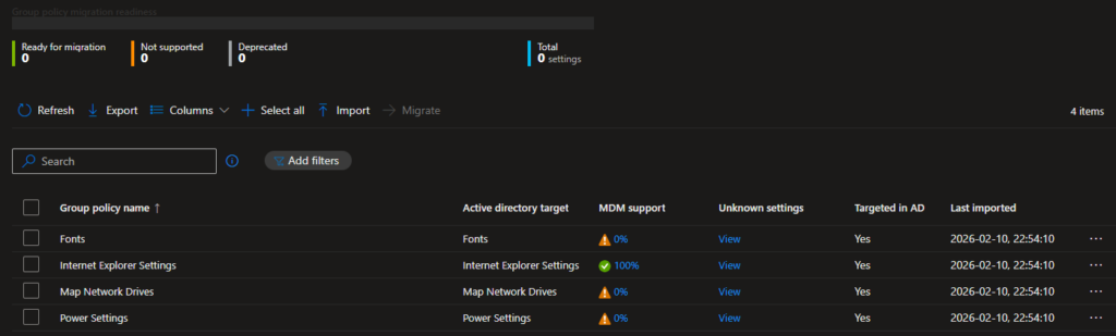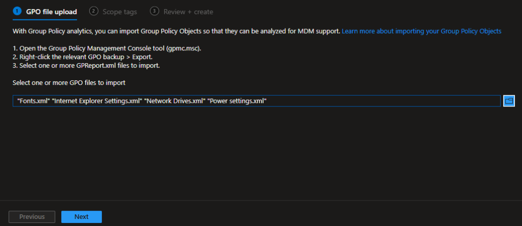 Using Group Policy Analytics to convert GPO’s to Intune policies