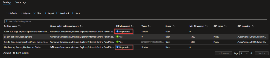 Later in this post we’ll look at some specific workarounds for the GPOs I wasn’t able to migrate and how to solve it in Intune. But first, let’s look at migrating our GPO with Internet Explorer Settings that actually translates directly to an Intune policy.
