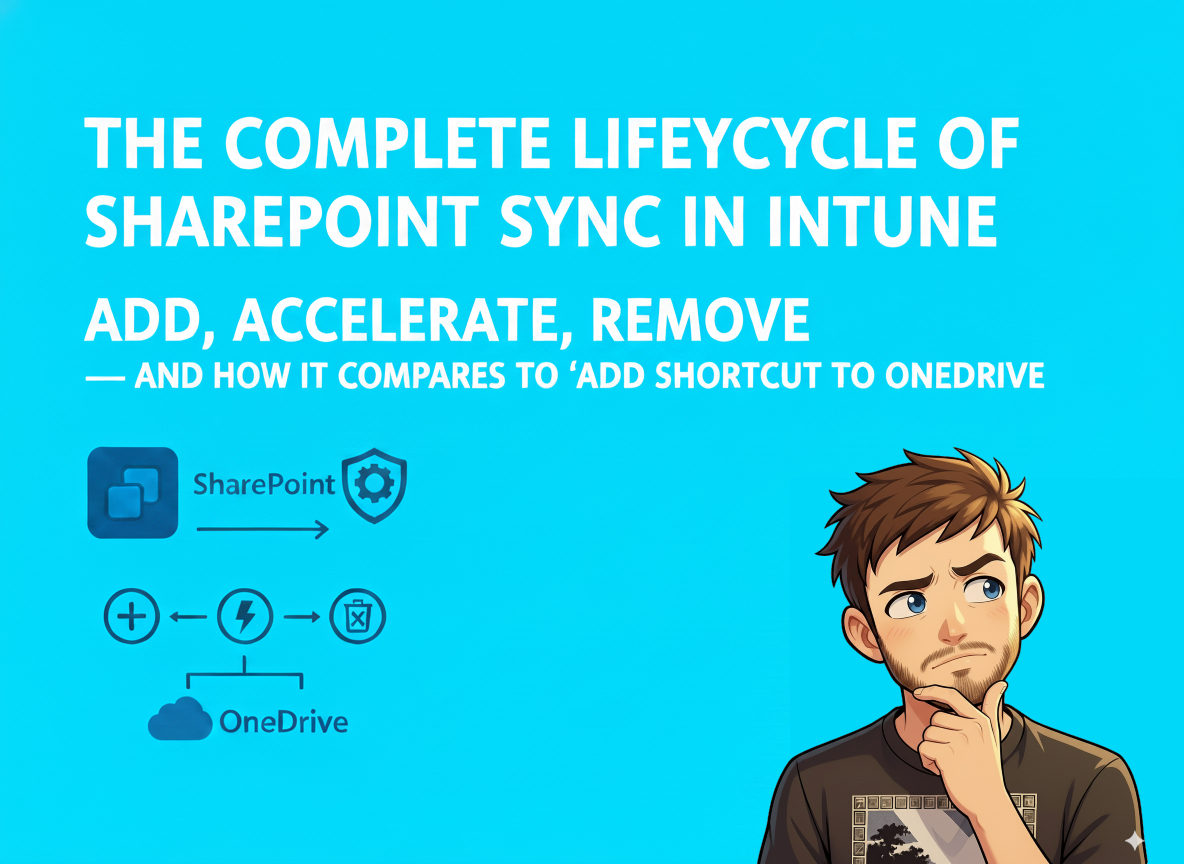 The Sharepoint sync has been a hot topic for quite some time. It’s bulky, slow and yet a lot of users and organizations still request it and wants to use it. Today we’ll briefly go over the pros and cons of sync vs shortcut in OneDrive. If you still choose to go for the Sharepoint sync I’ll give you the full cycle of setting it up, speed up the process and remove the 8 hour threshold that Intune sets and also how to remove it for users via Powershell. Buckle up, cause we’re in for a ride!