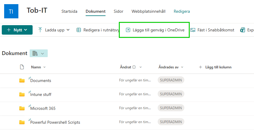 Go to the Sharepoint site and navigate to the document library that you wish to add a shortcut to and hit “Add shortcut to OneDrive” 👇