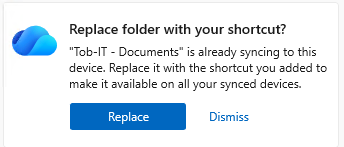 Another cool feature with shortcuts is that if you are trying to add a shortcut to a library that is already utilizing the sync you will be met by this: